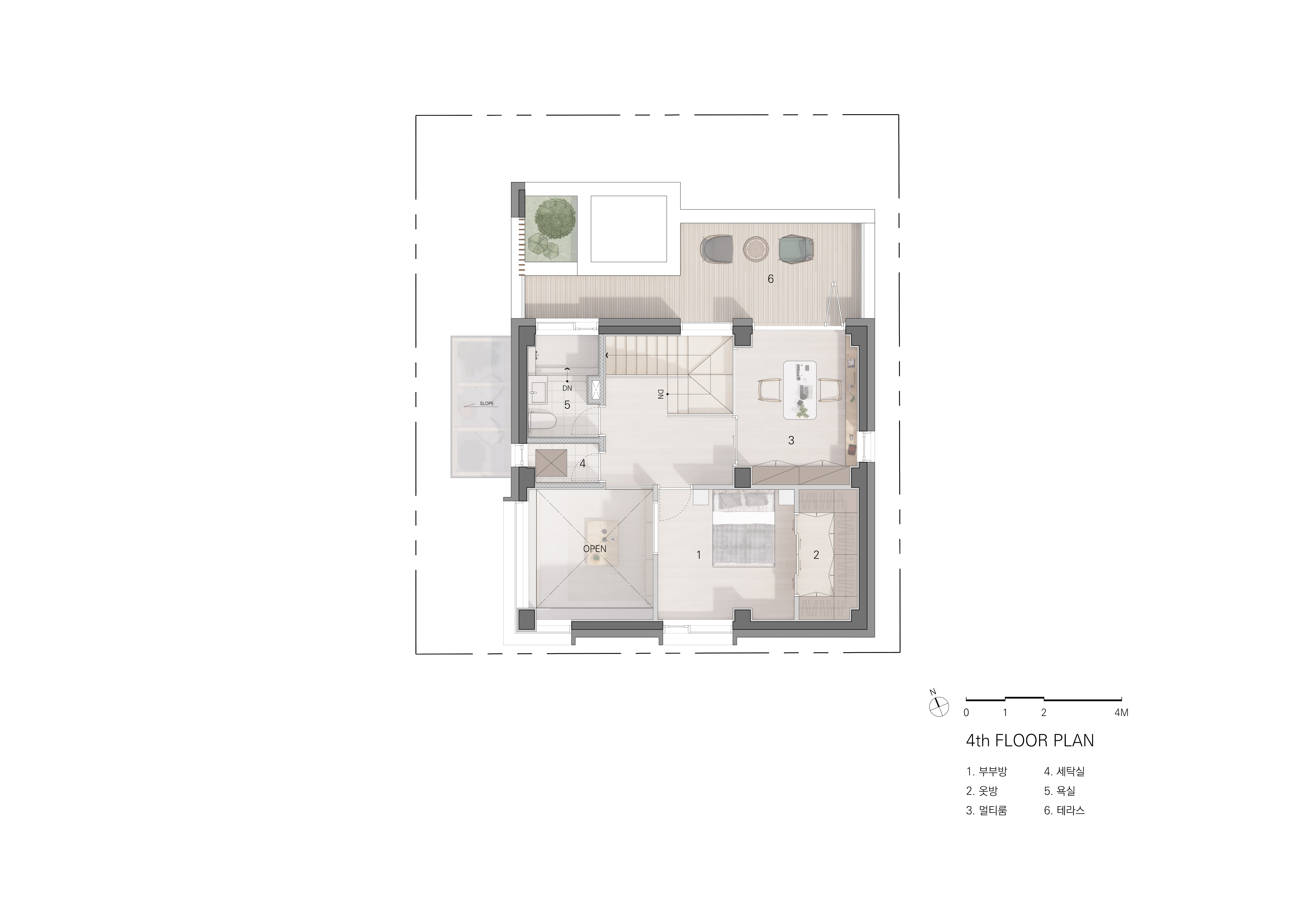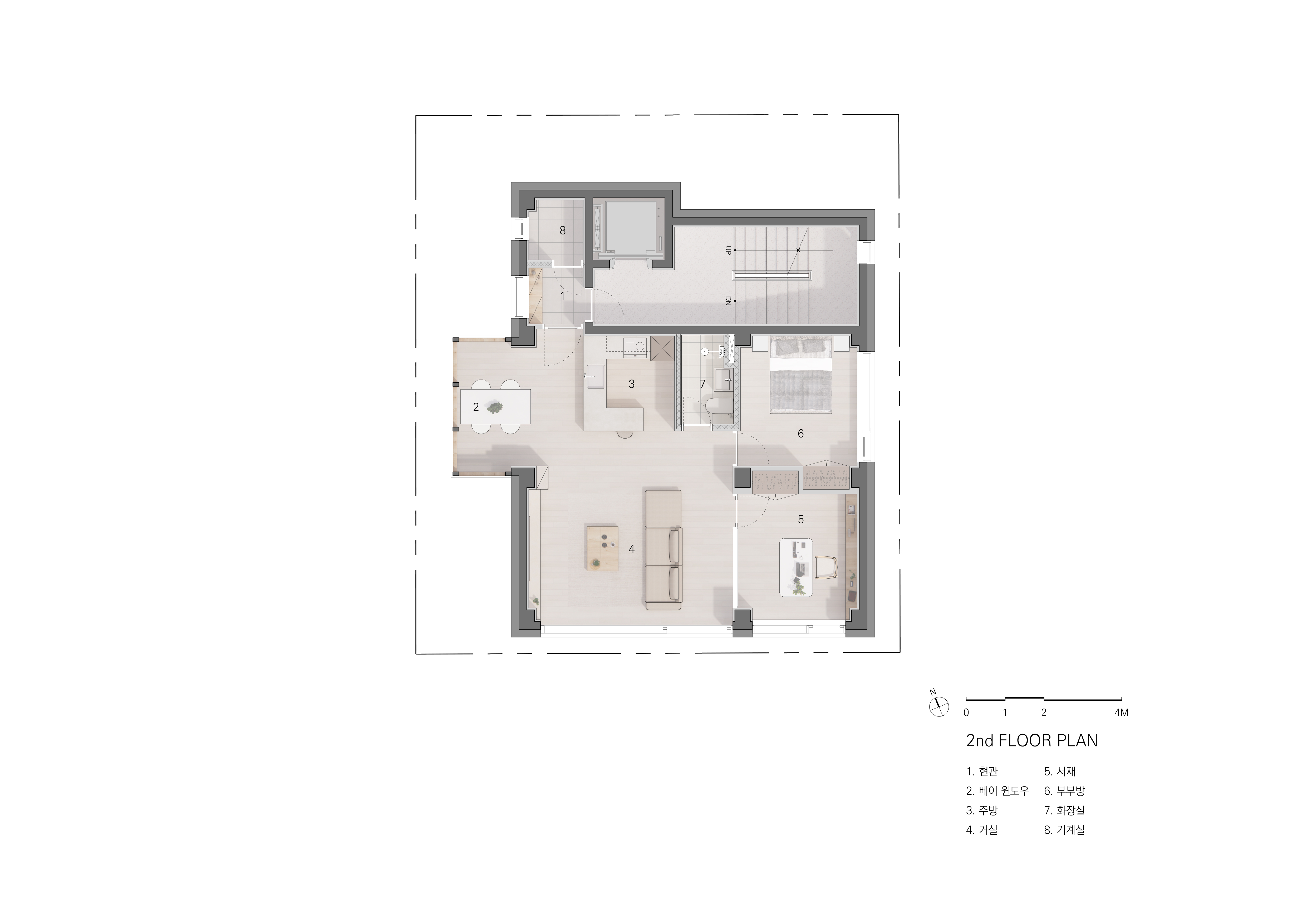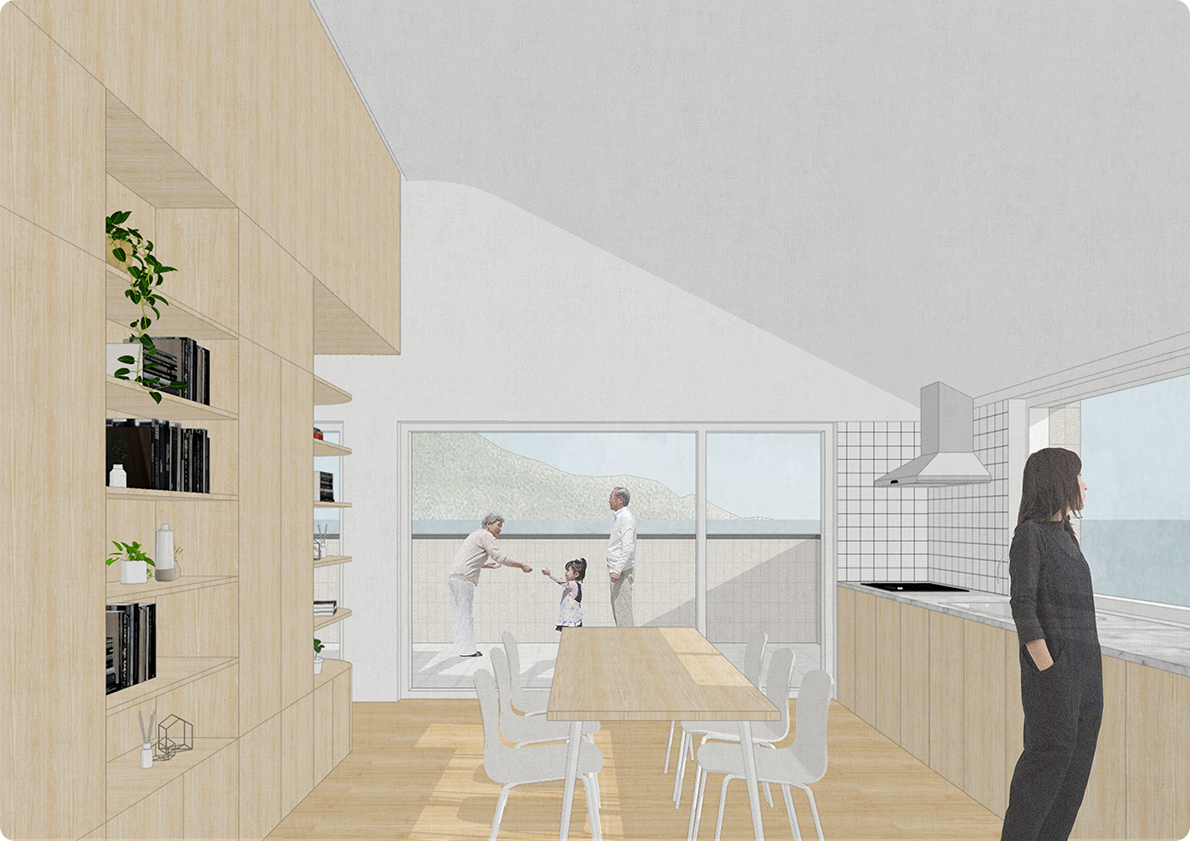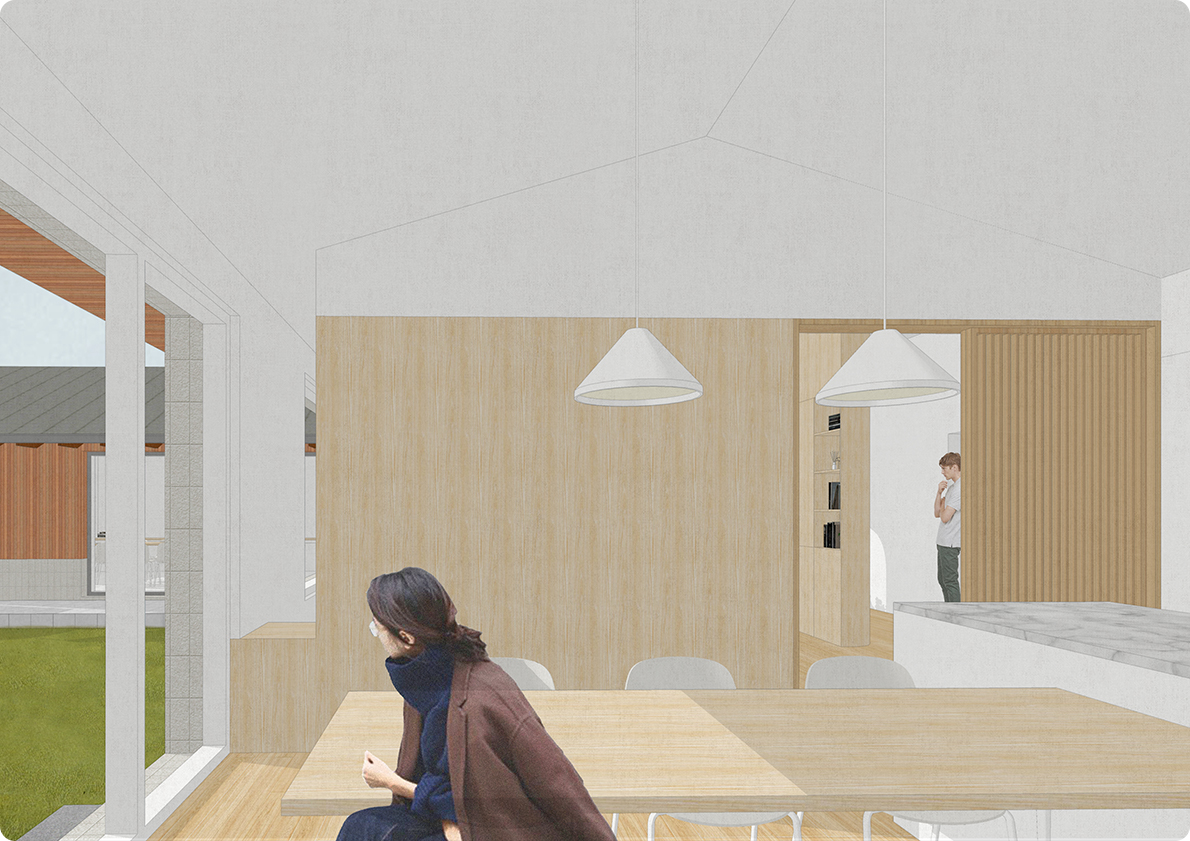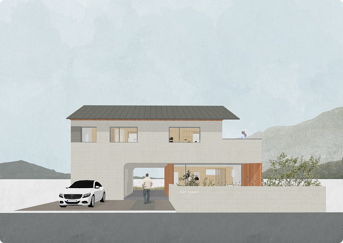 상하씨에게 이 지역은 어릴 적부터 독립하기까지 살던 동네이다. 학교를 졸업하고 취업할 때까지 머물다가 결혼하고 다른 곳으로 분가했다. 이후 맞벌이인 부부는 아이의 돌봄 문제로 부모님께 약간의 신세를 지고자 집 근처로 이사 왔다. 나이가 들어 바라본 옛 동네는 꼬마였을 때의 추억도 있었지만 골목길과 상점, 공원을 걷는 재미와 작은 도서관이나 금세 단골이 된 작은 카페를 찾는 즐거움이 커졌다. 부모님이 오랫동안 사시던 2층주택을 이제 재건축해야되는데 1층은 상가로 임대를 주고 2층에 부모님, 3-4층을 복층으로 우리가족이 사는 것이 좋겠다는 생각이 들었다. 복잡한 도시내에 짓는 주택이지만 전원주택과 같이 쾌적하고 유지비용도 적게 드는 집을 가지고 싶었다. 또한 부모님과 아이의 건강을 위해서 도심에 살지만 건강한 집을 만들고 싶었다. 이 조건에 딱 맞는 선택이 전기집이었다.