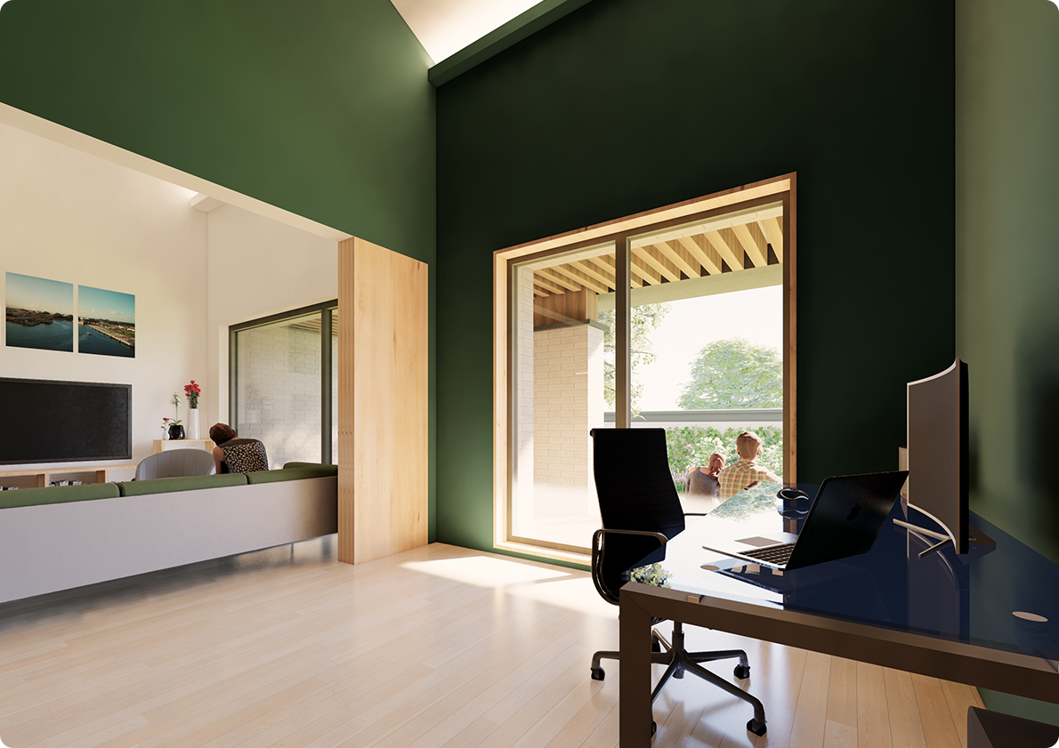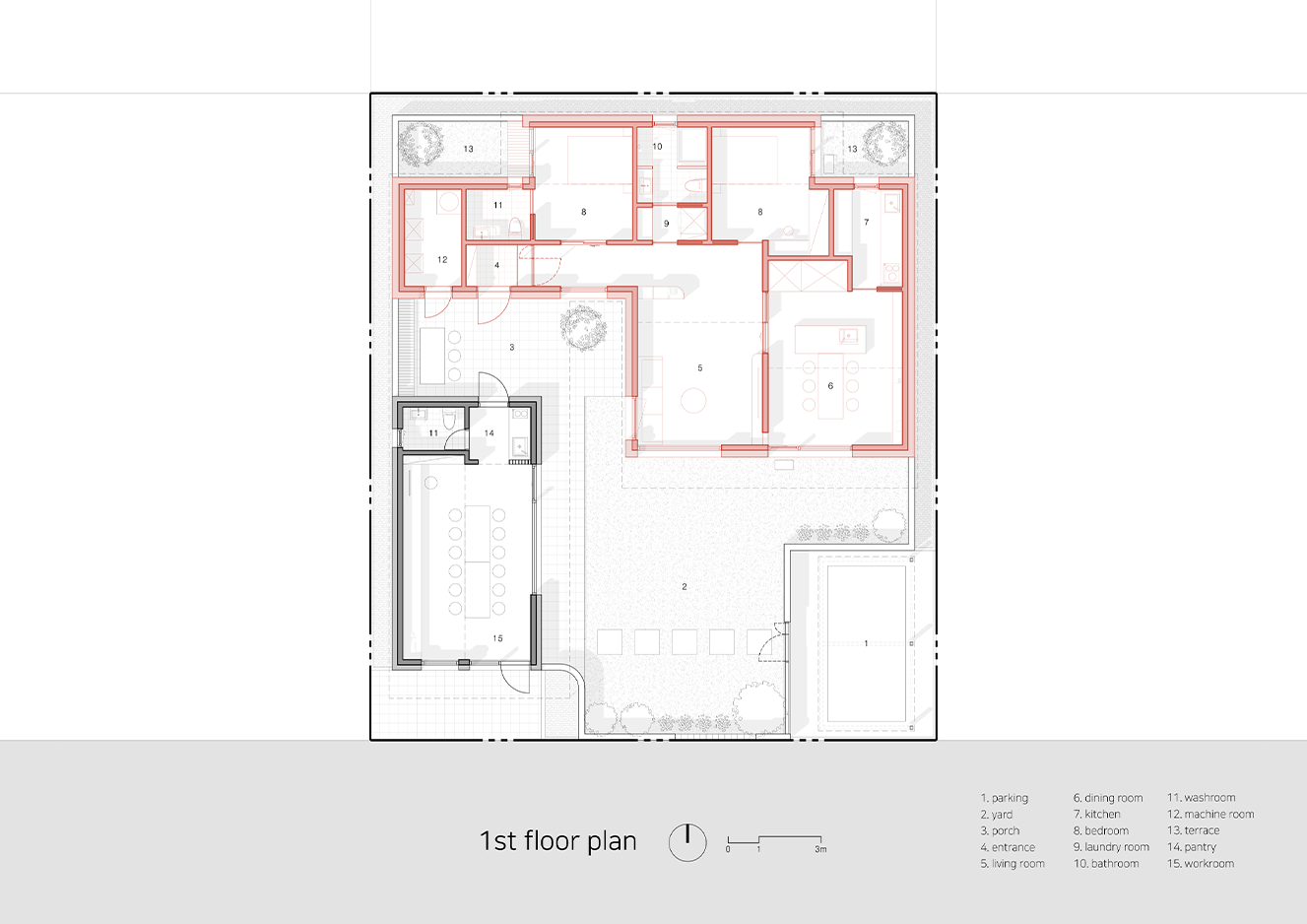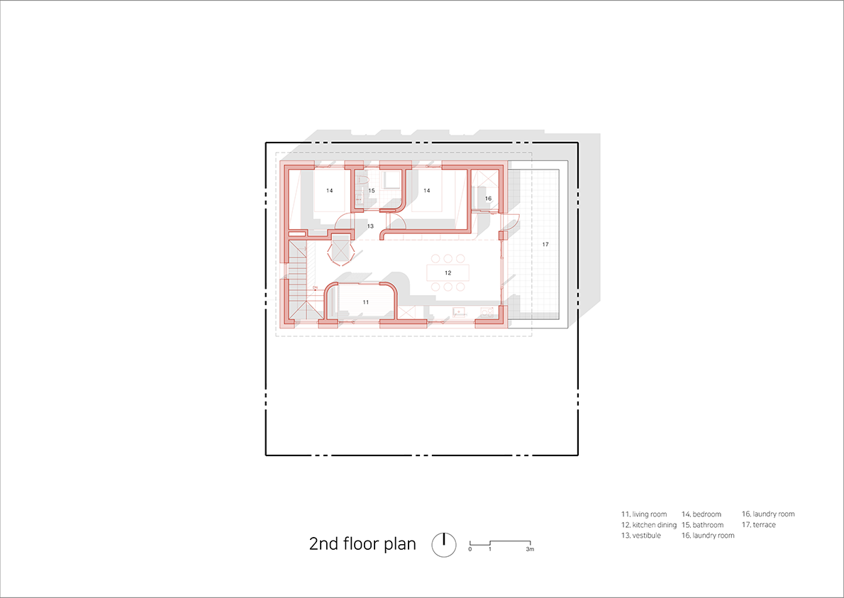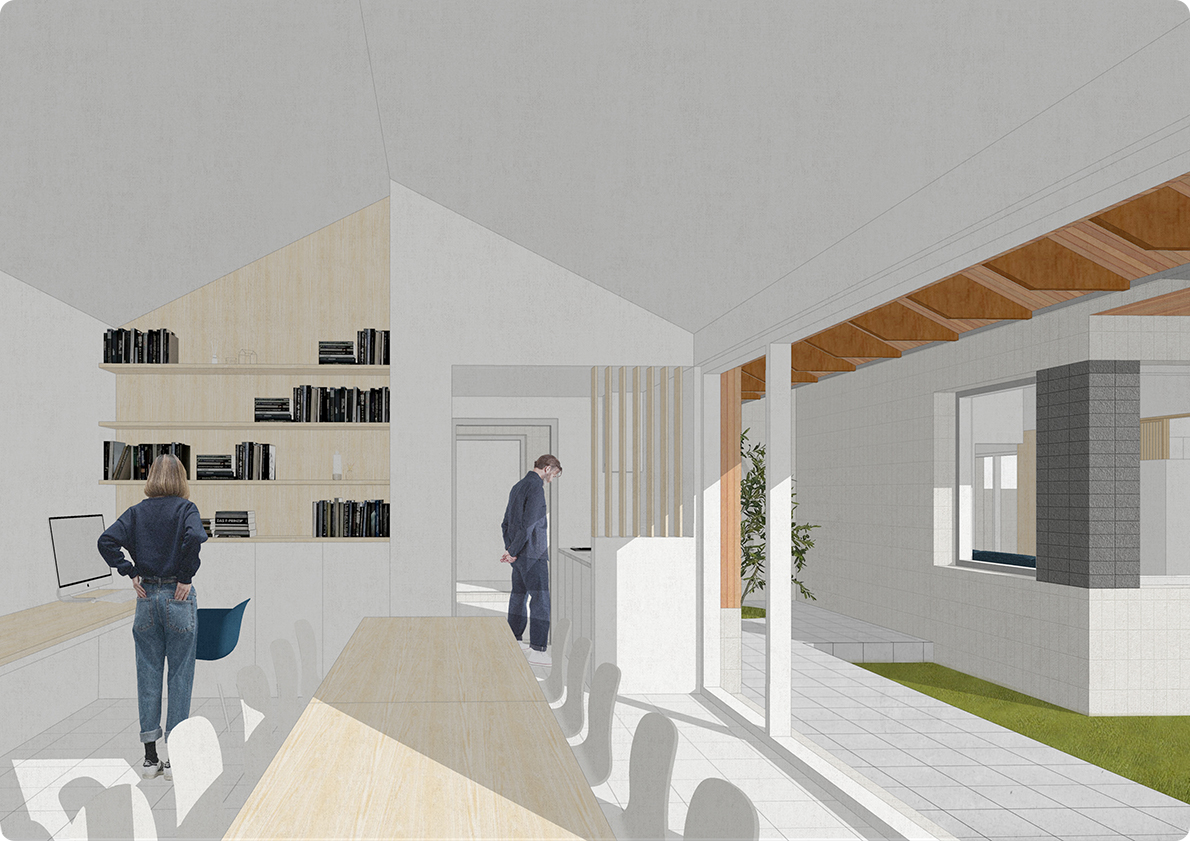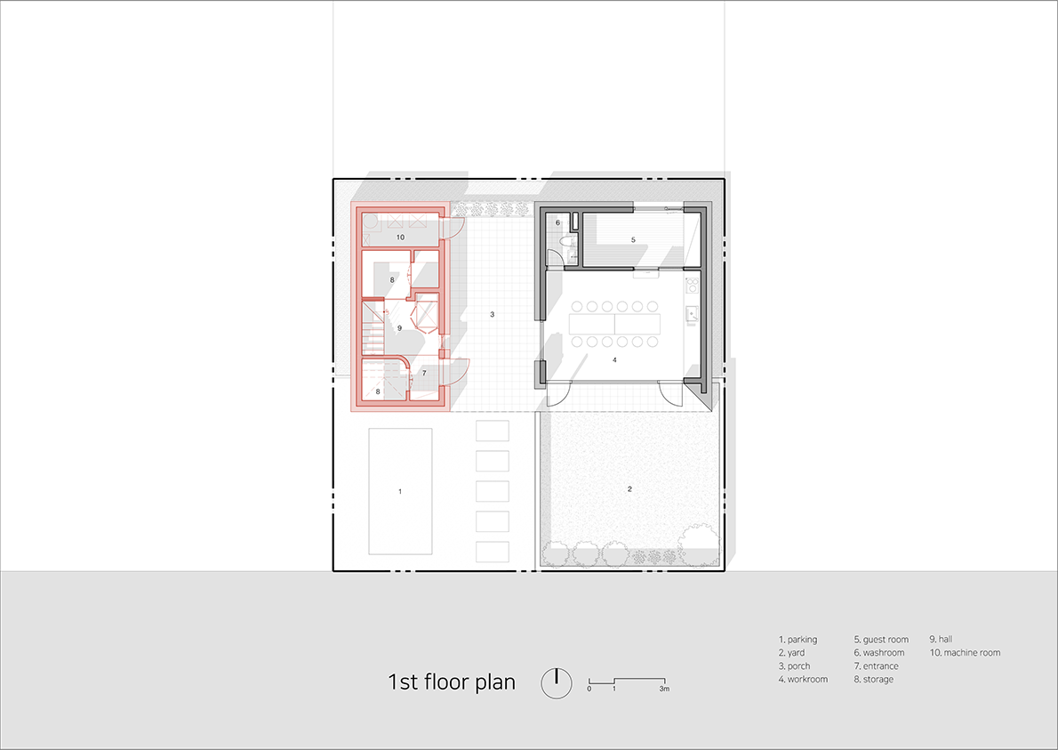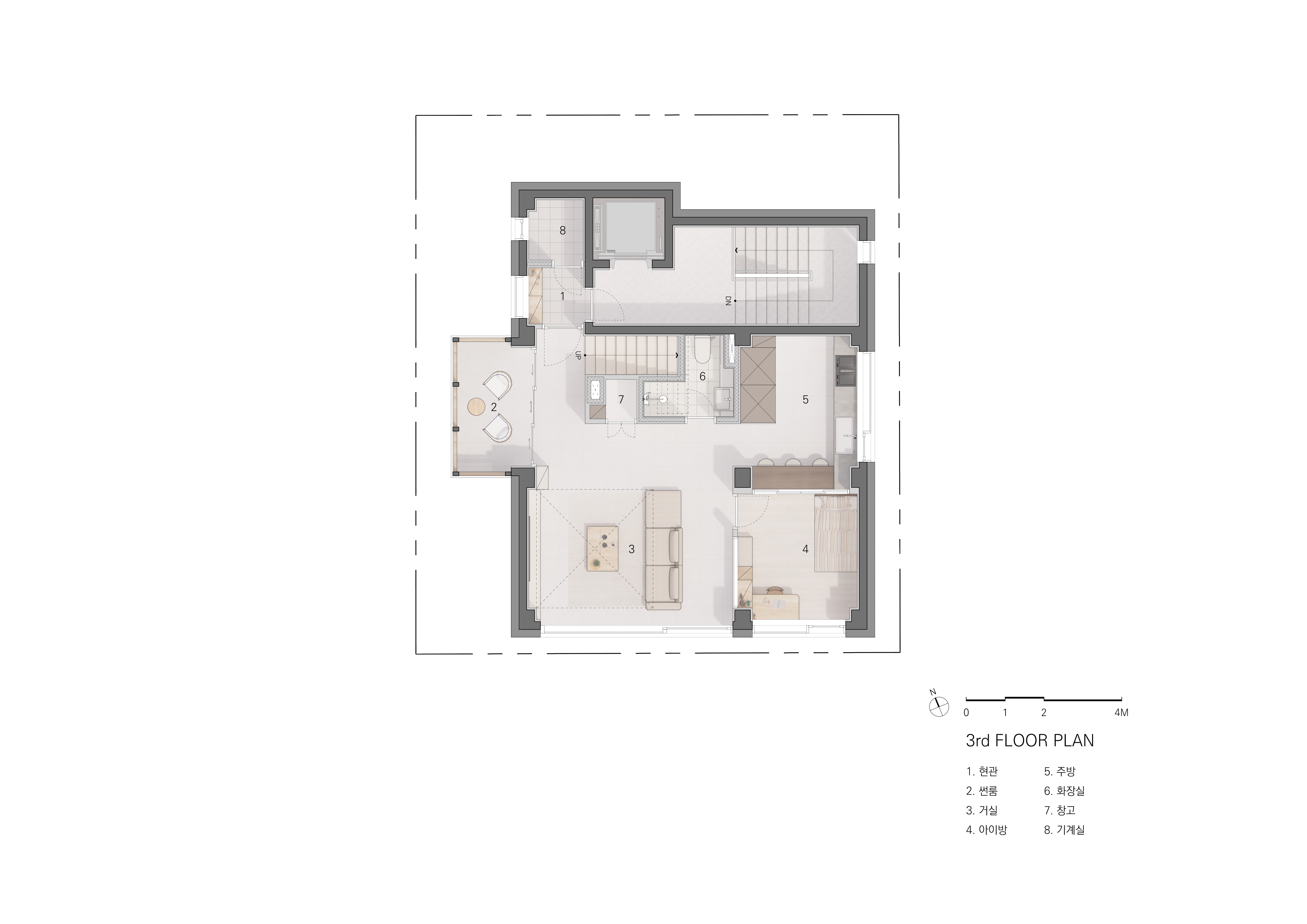 상하씨에게 이 지역은 어릴 적부터 독립하기까지 살던 동네이다. 학교를 졸업하고 취업할 때까지 머물다가 결혼하고 다른 곳으로 분가했다. 이후 맞벌이인 부부는 아이의 돌봄 문제로 부모님께 약간의 신세를 지고자 집 근처로 이사 왔다. 나이가 들어 바라본 옛 동네는 꼬마였을 때의 추억도 있었지만 골목길과 상점, 공원을 걷는 재미와 작은 도서관이나 금세 단골이 된 작은 카페를 찾는 즐거움이 커졌다. 부모님이 오랫동안 사시던 2층주택을 이제 재건축해야되는데 1층은 상가로 임대를 주고 2층에 부모님, 3-4층을 복층으로 우리가족이 사는 것이 좋겠다는 생각이 들었다. 복잡한 도시내에 짓는 주택이지만 전원주택과 같이 쾌적하고 유지비용도 적게 드는 집을 가지고 싶었다. 또한 부모님과 아이의 건강을 위해서 도심에 살지만 건강한 집을 만들고 싶었다. 이 조건에 딱 맞는 선택이 전기집이었다.